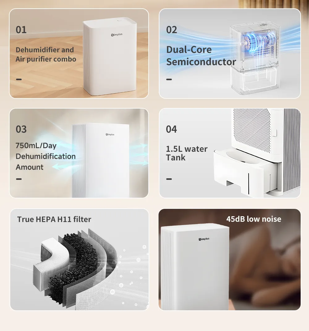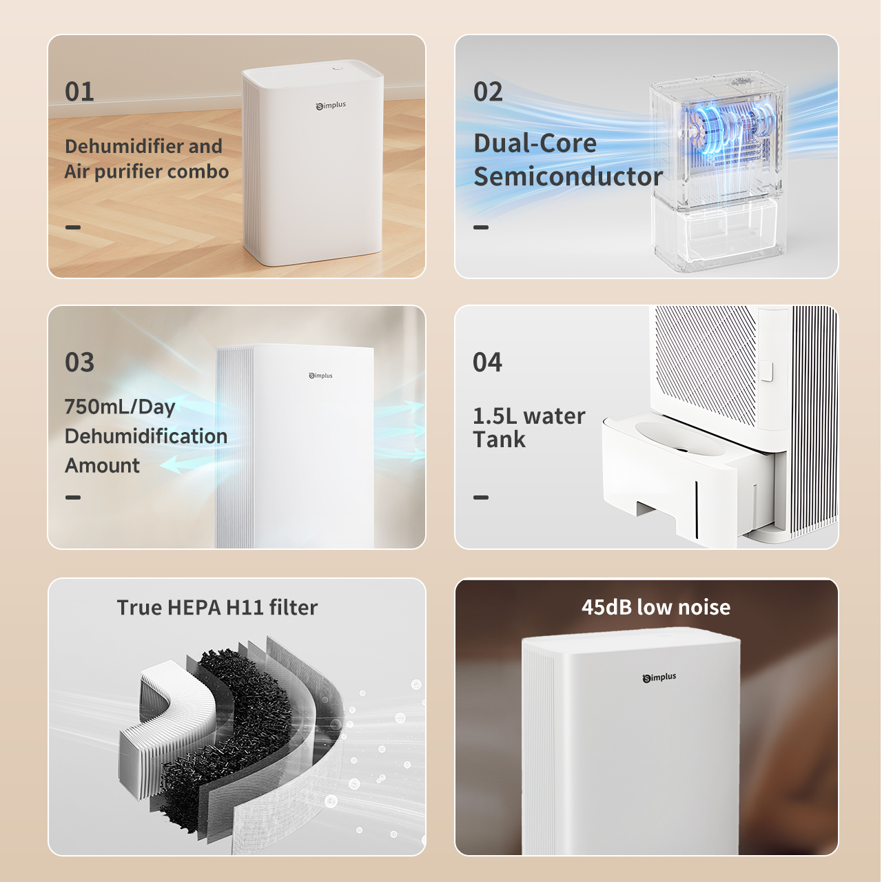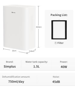 The Simplus Dehumidifier Air Purifier is an essential addition to any room or office, designed for efficient and rapid dehumidification.