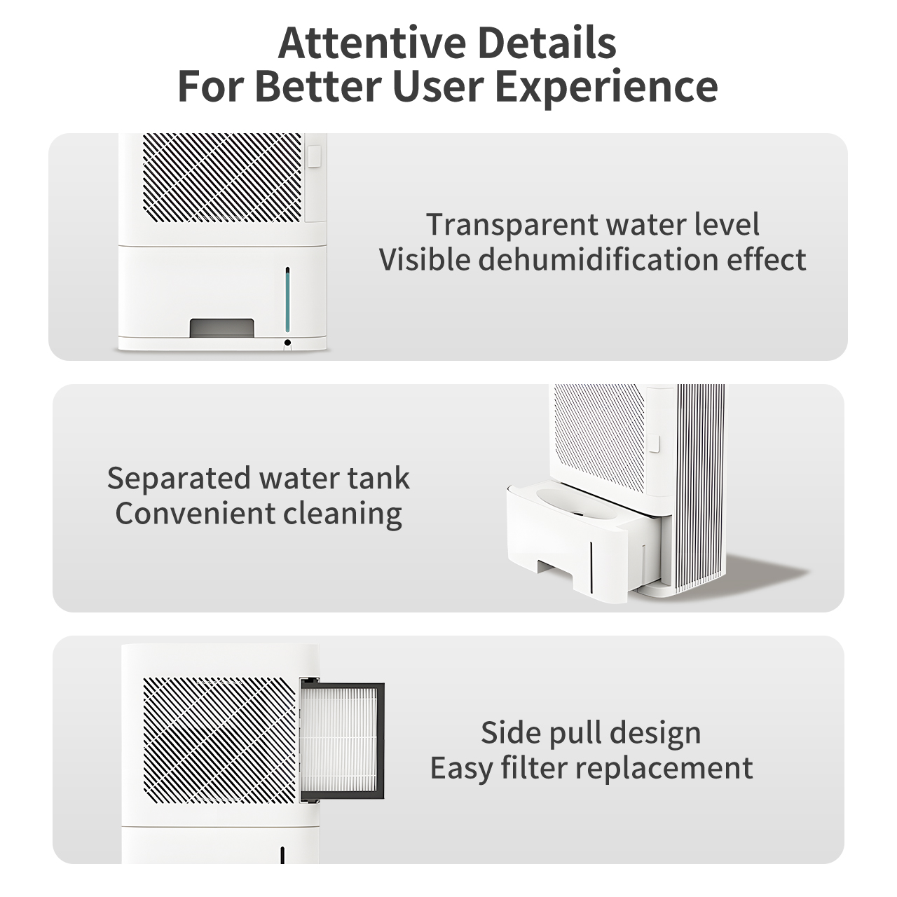 This portable and multifunctional device not only reduces excess moisture but also purifies the air, enhancing overall air quality.