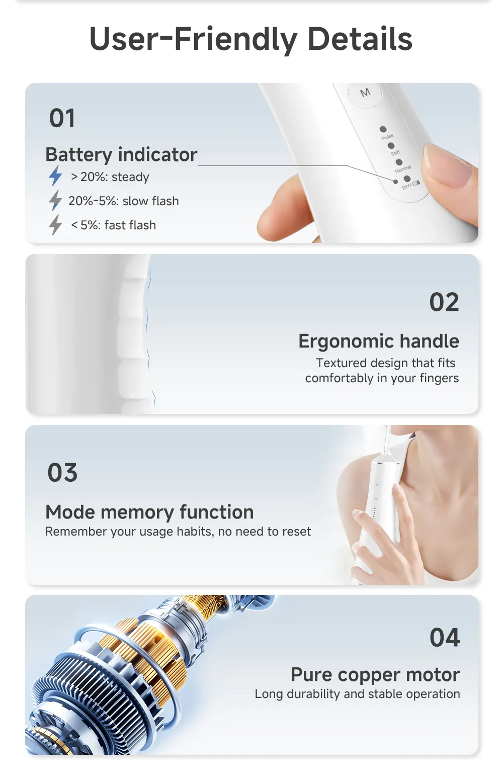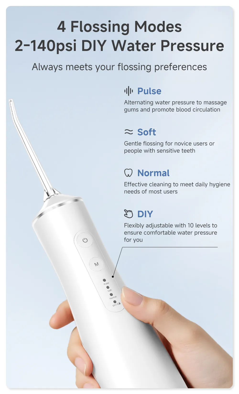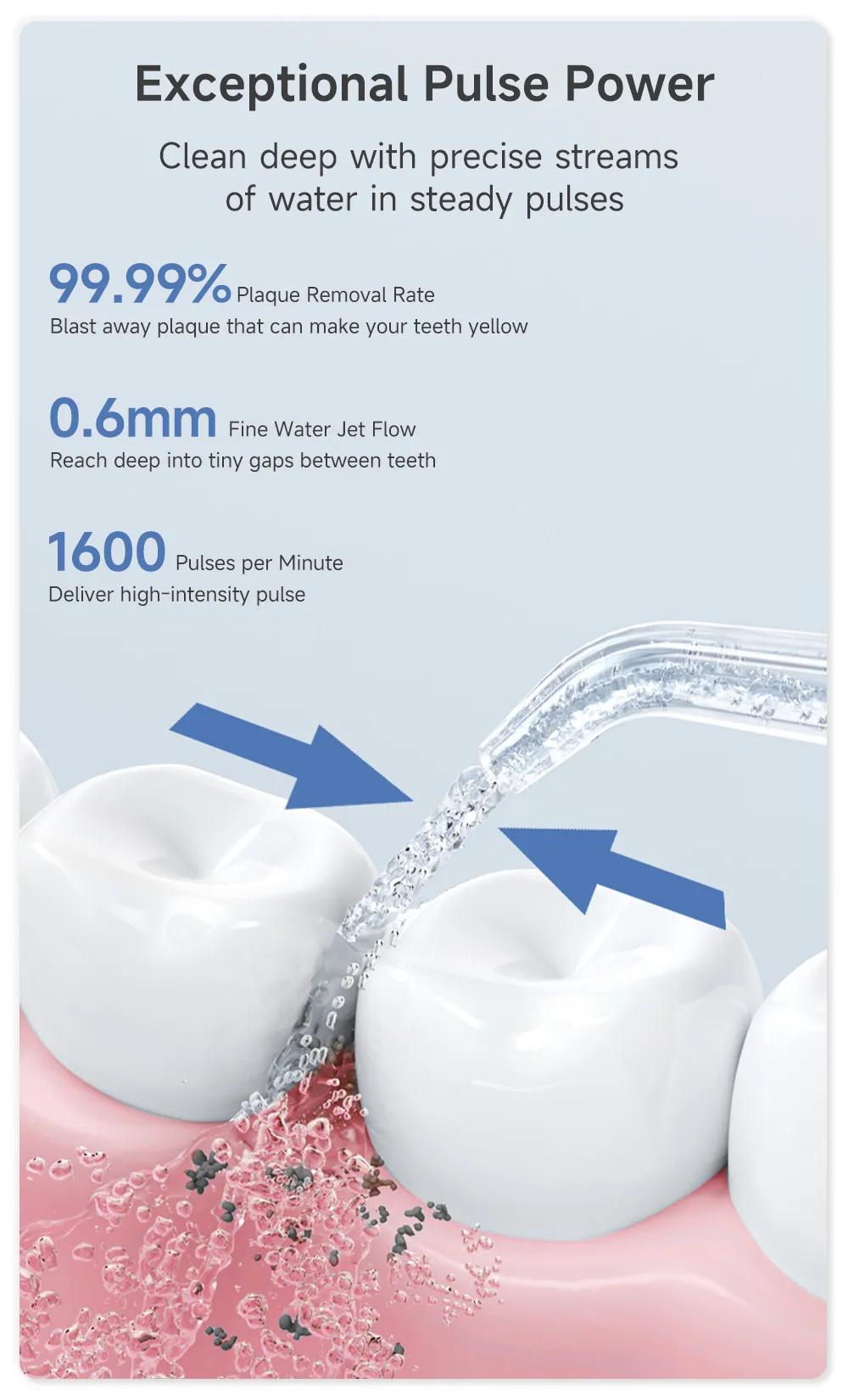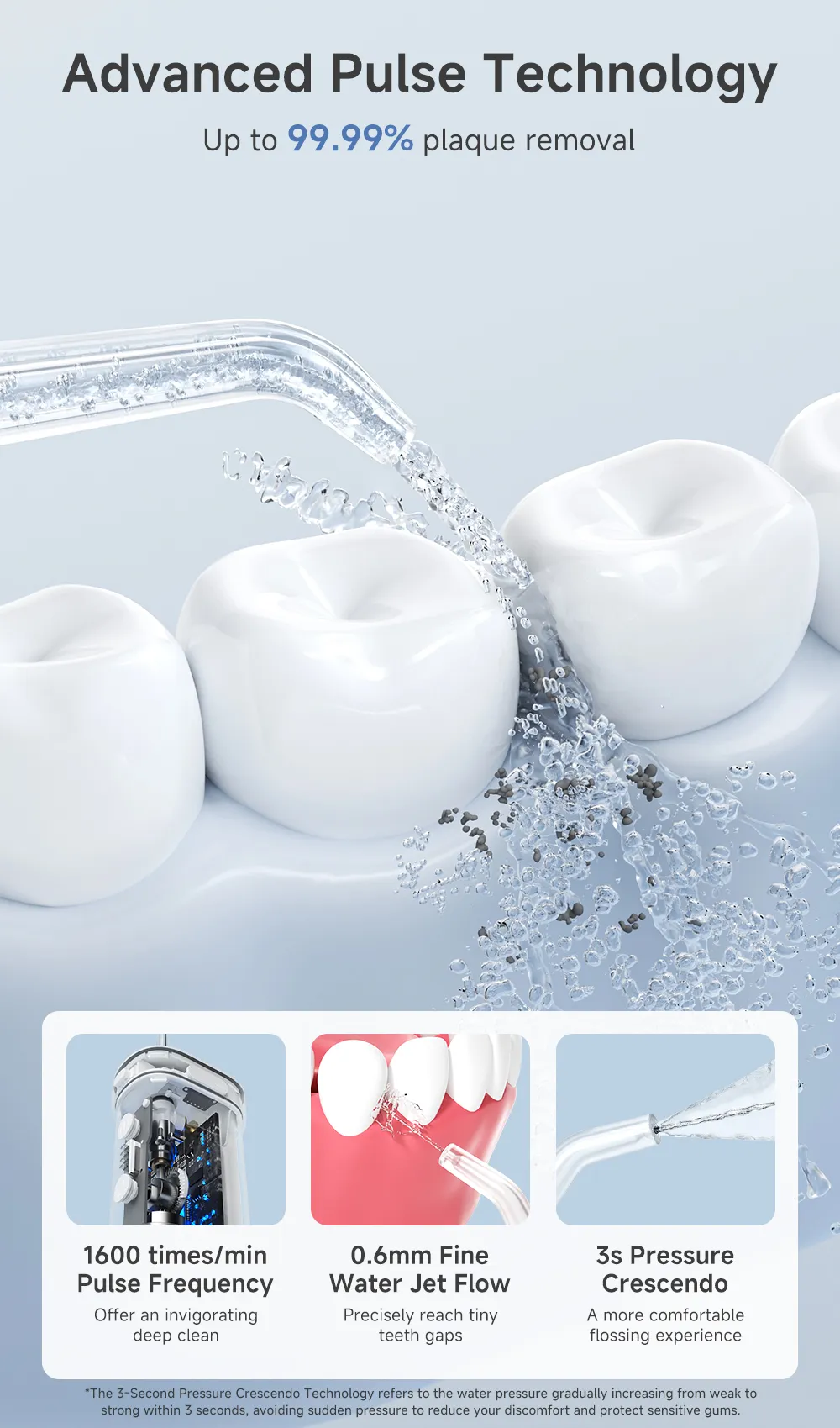 Featuring high-frequency pulse water flow and three adjustable modes—gentle, standard, and pulse—it caters to your unique needs for effective plaque removal.
