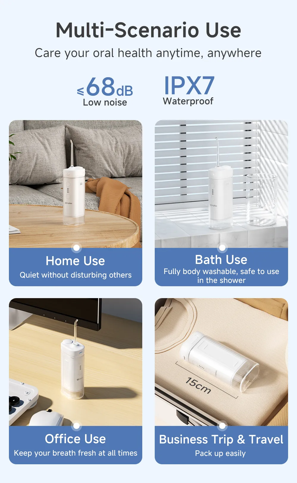 Experience superior oral care with this cordless water flosser, designed for effortless cleaning and maintenance of your dental hygiene.